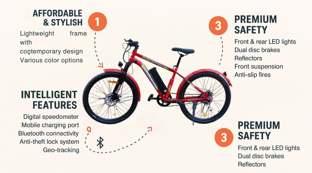 OMOORJEESHAA MOBILITY electric cycle is thoughtfully designed to cater to a diverse range of users.